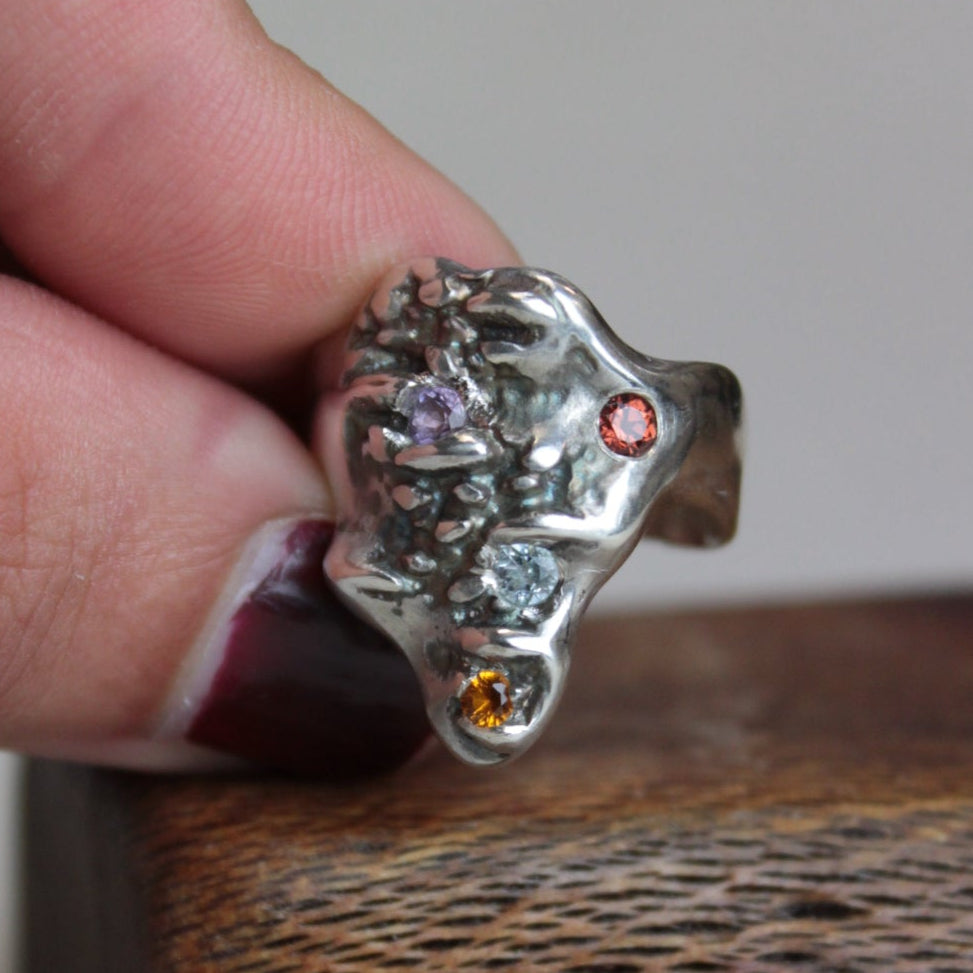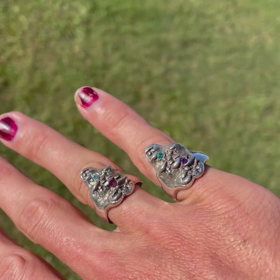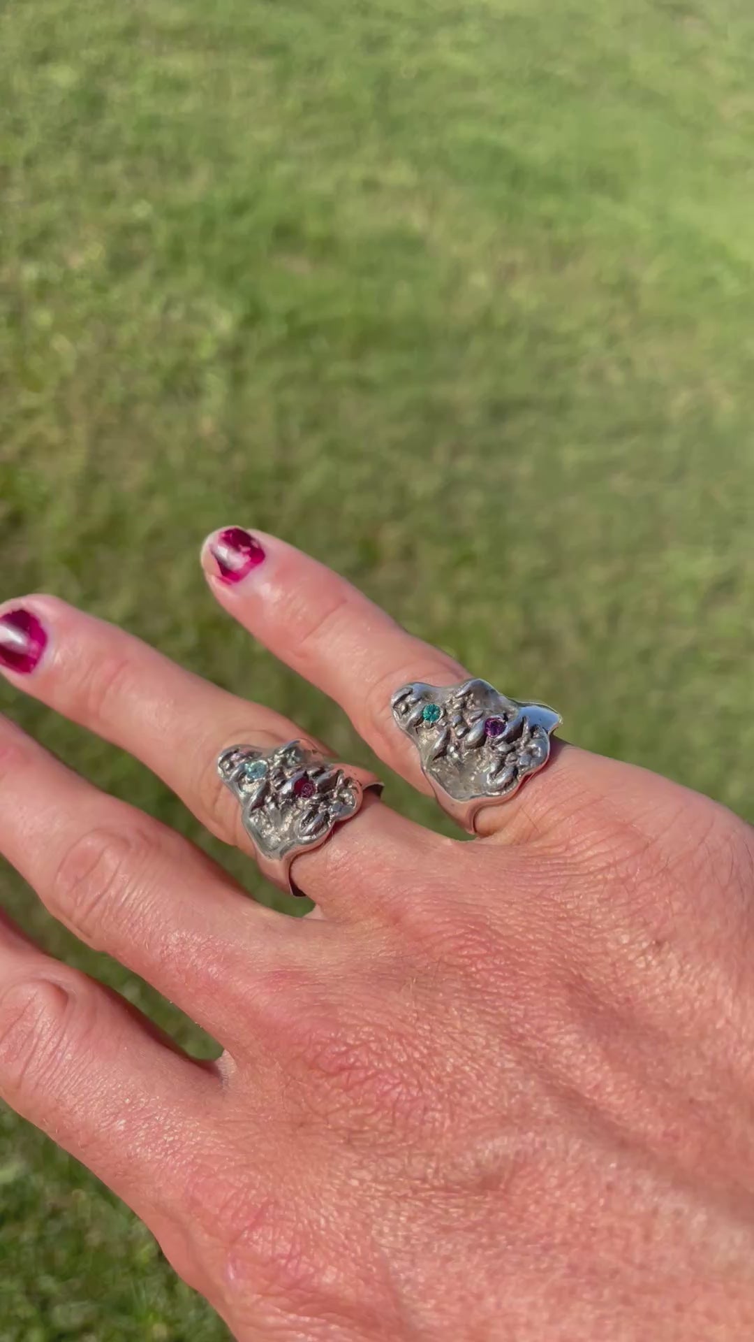 - Hand carved, oxidised, polished and set (gems) in the HoH home studio, Northern Beaches.
