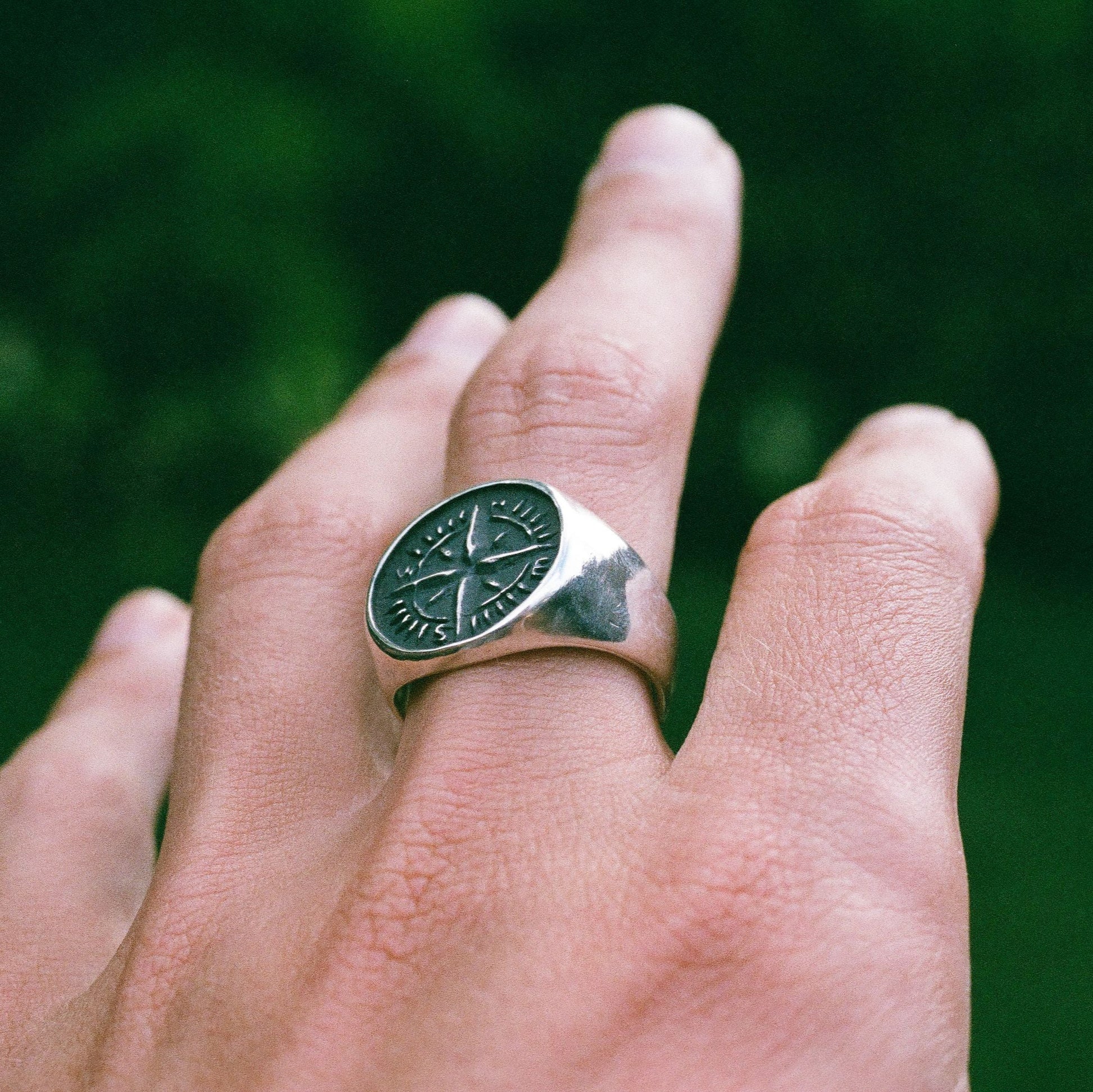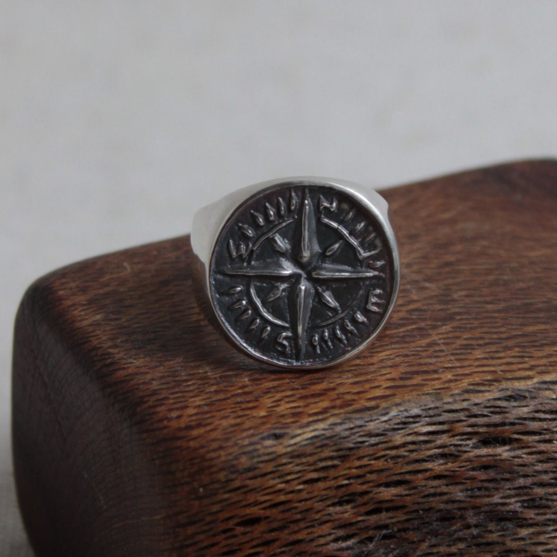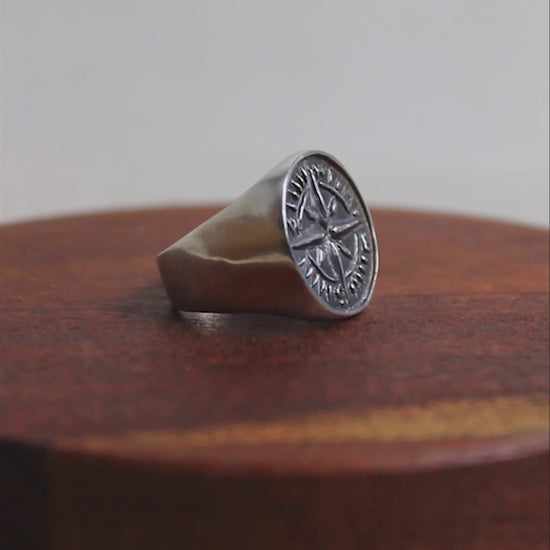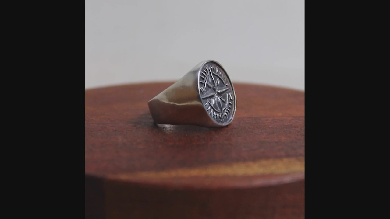 - The compass stamp (the negative) was first hand carved and casted, then used to press the design (the positive) and carve the ring.
