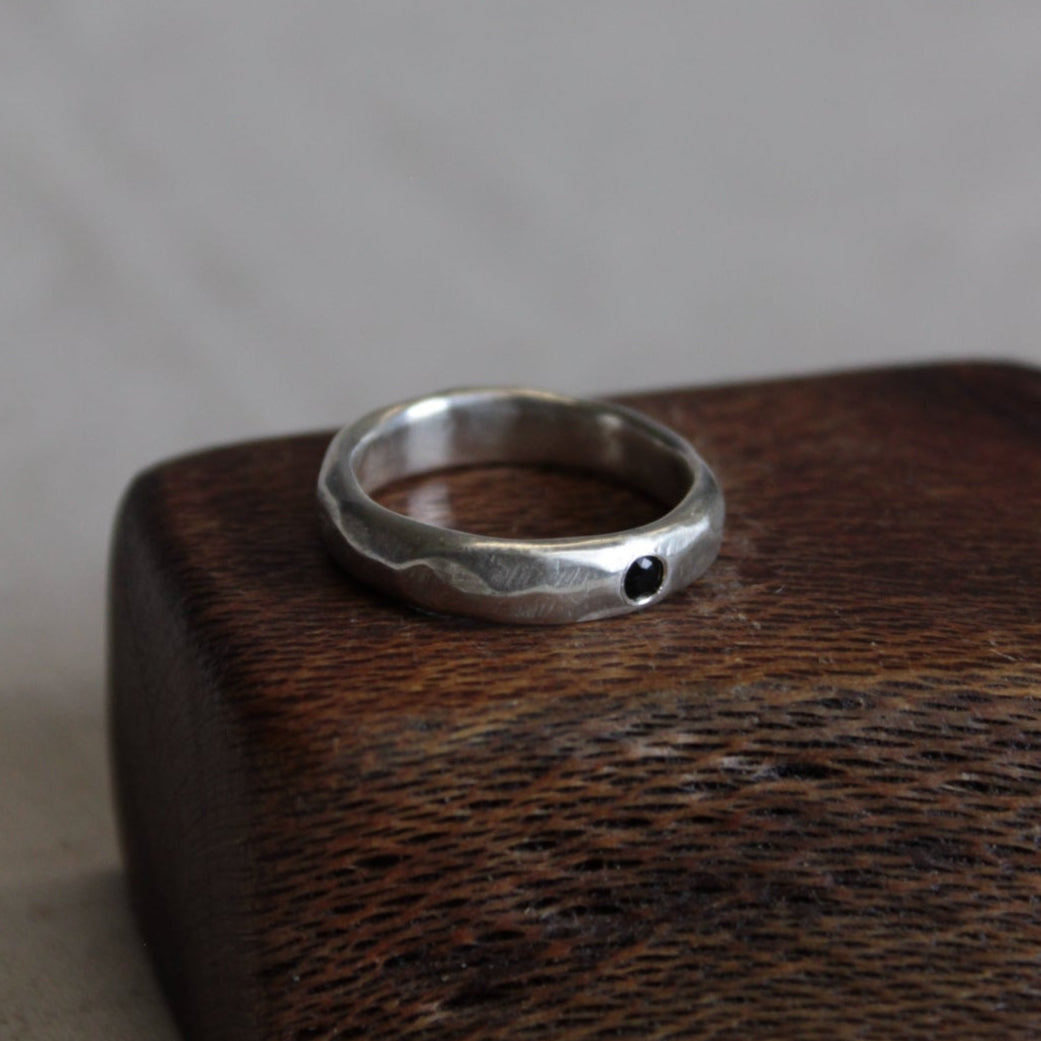 MATERIAL - Sterling silver (0.925), natural black sapphire.